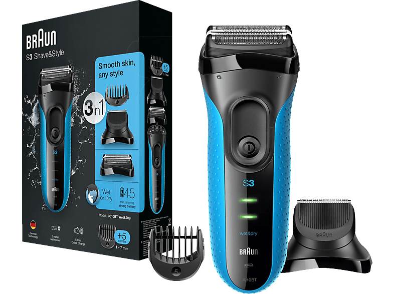 Rasierer Braun Series 3 Shave Style 3010bt Rasierer Schwarz Blau Wet Dry Mediamarkt