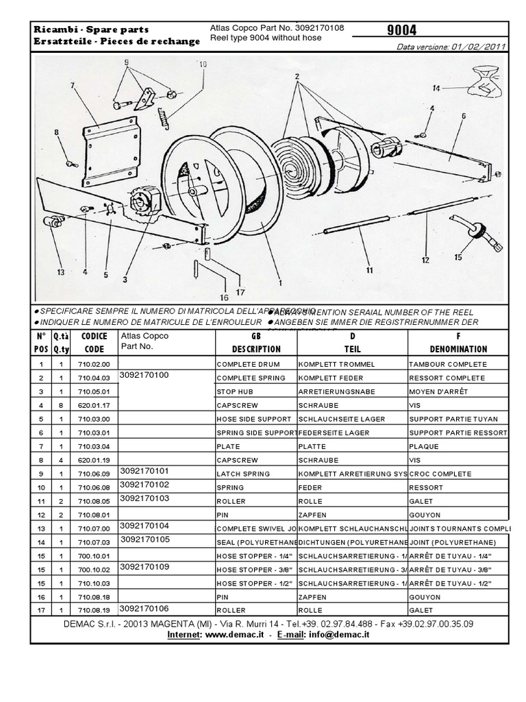 Ricambi Spare Parts Ersatzteile Pieces De Rechange Atlas Copco Part No 3092170108 Reel Type 9004 Without Hose Science Science And Technology