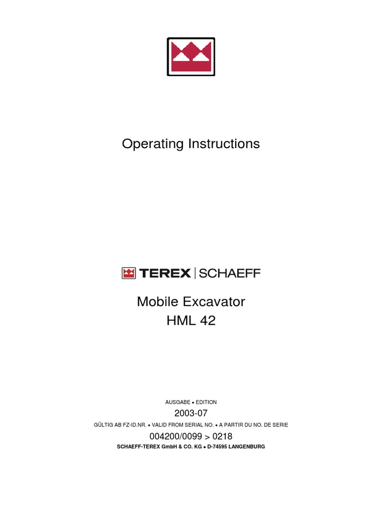 Operating Instructions Terex Hml 42 Pdf Safety Brake